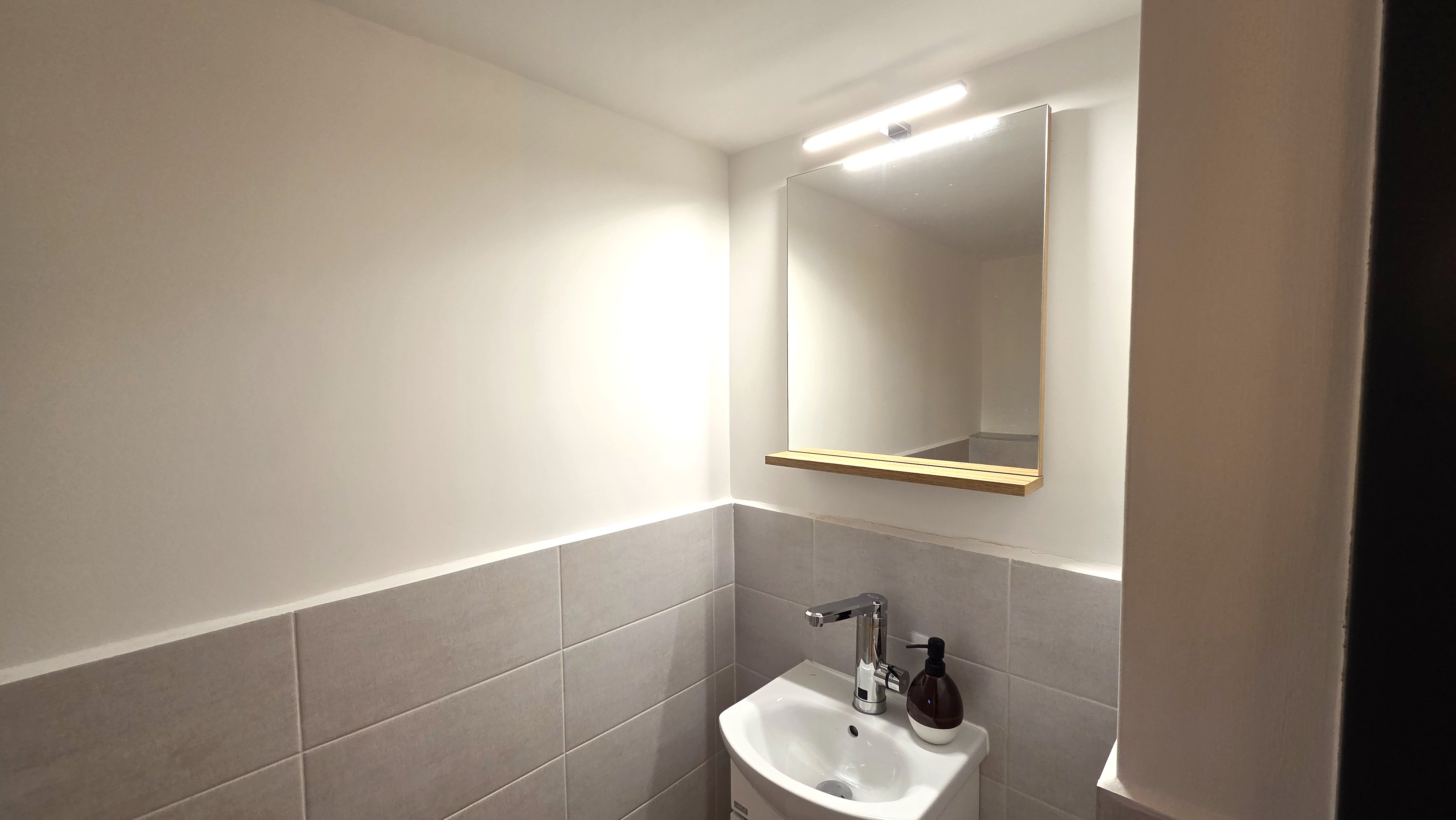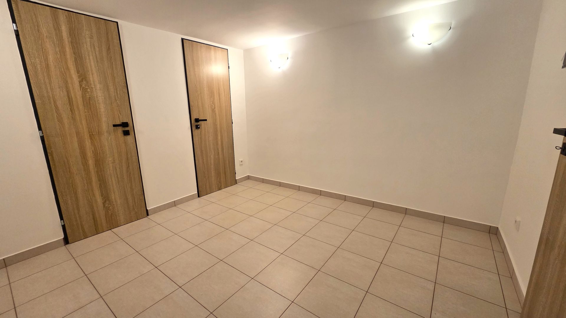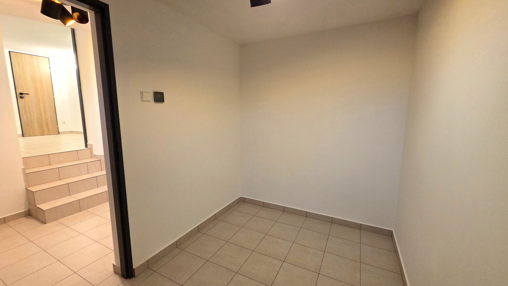 Dispozičně se jedná o dvě místnosti, toaletu a kuchyňku o celkové výměře 22 m². Jedna z místností má snížený strop s výškou 2 m. Podlahy jsou vydlážděné, což působí čistě a profesionálně.